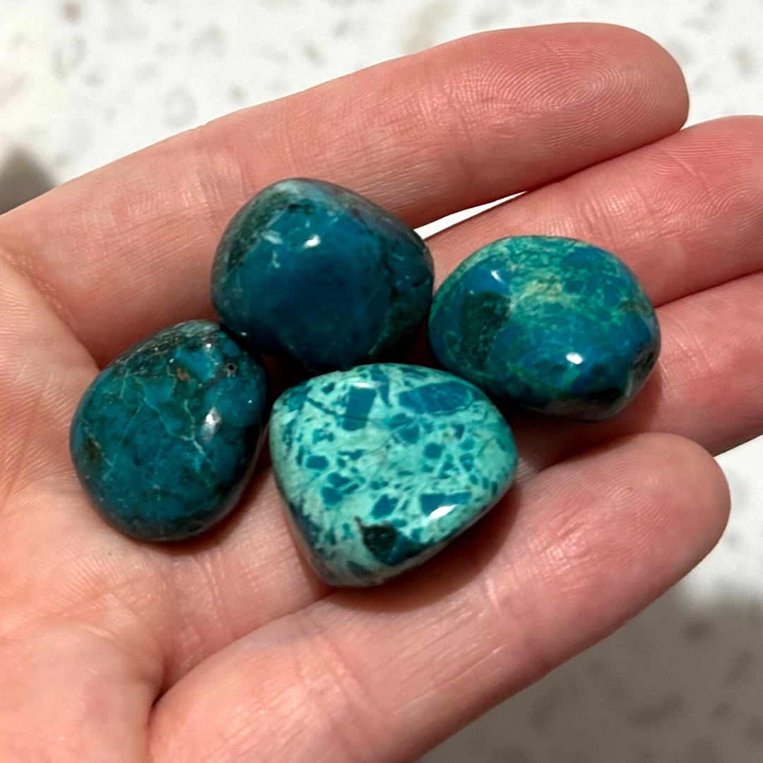 Healing: Chrysocolla is a stone of communication. In its very essence, it’s devoted to expression, empowerment and teaching. A peaceful stone, it emphasises the power our words and actions have on those around us, and encourages compassion and strengthening of character. Chrysocolla is a teaching stone, encouraging us to reveal our highest knowledge, so that others may benefit from our experiences. This is a stone of forgiveness, peace, and the strengthening of emotional bonds, it encourages compassion and helps us recover our natural spontaneity.